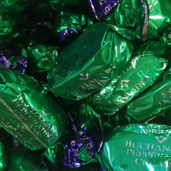 Mint flavoured boiled sweets with a chocolate centre