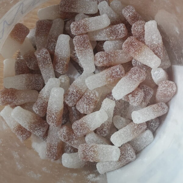 Cola flavoured fizzy sweets in the shape of cola bottles